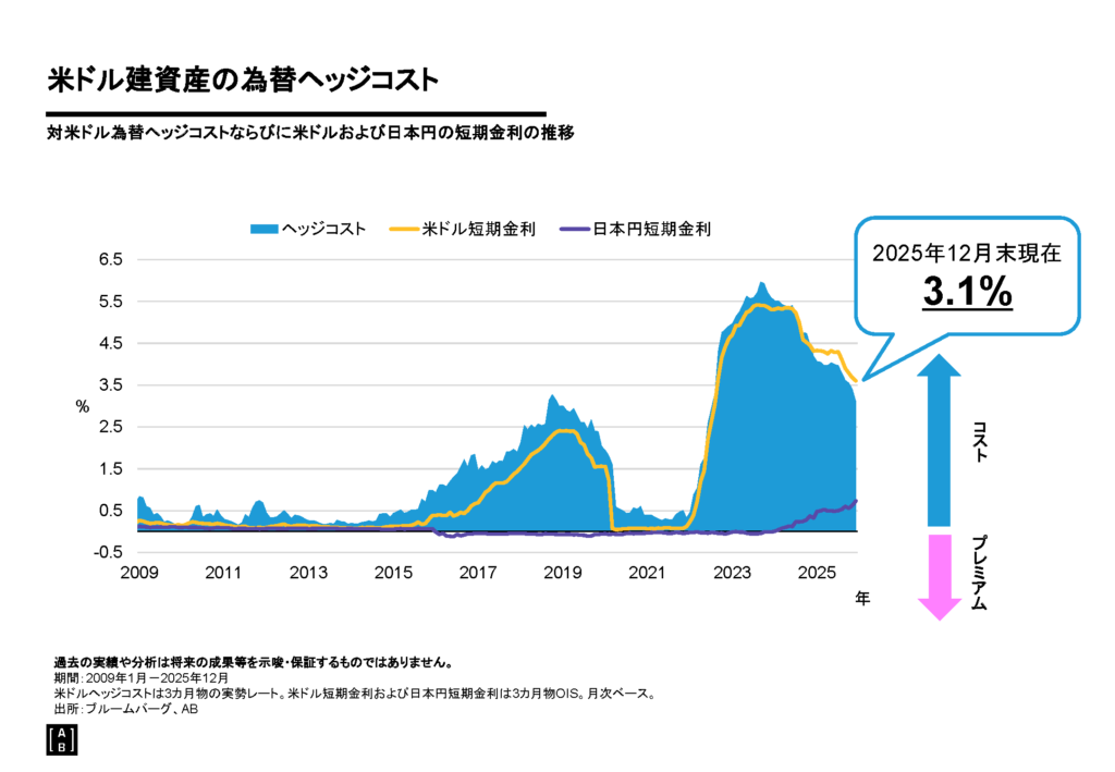 - 現在の為替ヘッジコスト(米ドル建資産の円ヘッジ)はどのくらいですか?