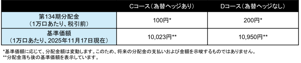 アライアンス・バーンスタイン・米国成長株投信Cコース毎月決算型(為替ヘッジあり)予想分配金提示型(以下、Cコース)/Dコース毎月決算型(為替ヘッジなし)予想分配金提示型(以下、Dコース)は、2025年11月17日決算の収益分配金(1万口あたり、税引前、以下同じ)を以下のとおり決定しましたのでお知らせします。