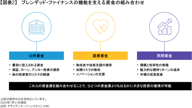 国際連合(国連)の警告によれば、「持続可能な開発目標(SDGs)」の実現には年間約4兆米ドルの資金が不足している(国連のサイト(英語、外部サイト)ご参照)。公的資金だけで埋めるには、不足が大きすぎると言える。公的資金に慈善資金や民間資金を組み合わせるブレンデッド・ファイナンスは、こうした資金不足の解消、ひいては貧困の削減や気候対策、さらにはクリーンエネルギーへのアクセスなど、世界的な優先課題への取り組みの進展に寄与する可能性がある。