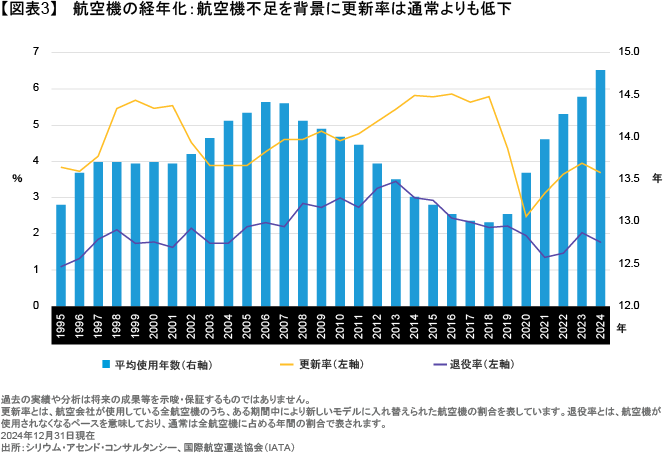 また、世界的な旅行需要の高まりと航空機不足が相まって、航空機リース戦略(以前の記事『航空機ファイナンス:晴れた空と限られた供給』ご参照)や同市場の専門知識を有する運用会社に追い風をもたらすだろう(図表3)。そしてその一方で、AIデータセンター向けの需要が主な要因となり、世界のエネルギー需要は今後も拡大し続けると考えられる。そうした需要の拡大は、ABの見方によれば、太陽光発電や公共用の蓄電設備を含む「総動員型」のエネルギー調達アプローチが求められることを意味する。エネルギー市場は事業の複雑性が高いことから、エネルギー需要の拡大は、同市場を熟知した資本提供者に有利に働くことになるとABは見ている。