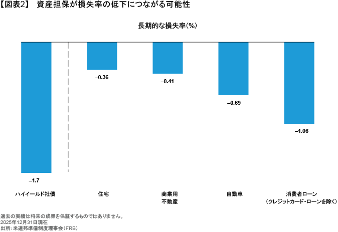 加えて、これらのローンも企業向けダイレクト・レンディングと同じように、損失の軽減に役立つ可能性のある、重要な構造上のプロテクションを有している。そのひとつは実物担保によるローンの保全であり、それがある場合、デフォルト時の回収率はこれまで高い水準にとどまってきた。