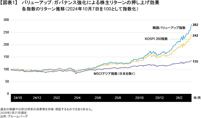 さらに、2025年の商法改正によって、これらの改革は法的効力を持つようになった。当改正を通じて韓国政府は、すべての株主に対する取締役のフィデュ―シャリー・デューティー(受託者責任)を明文化し、少数株主の立場を強化するための措置を講じている。加えて韓国政府は2026年2月、法人税法の改正を通じて企業への圧力を強め、高い配当を支払う企業が税制上の優遇を引き続き受けるためには、バリューアップ計画を公示しなければならないとした(韓国の金融サービス委員会のサイトご参照(英語、外部サイト))。