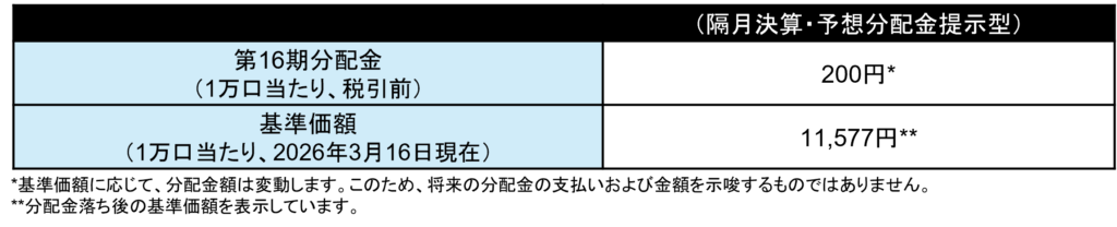 アライアンス・バーンスタイン・米国割安株投信(隔月決算・予想分配金提示型)(以下、「当ファンド」)は、2026年3月16日決算の収益分配金(1万口当たり、税引前)を、以下のとおり決定しましたのでお知らせします。